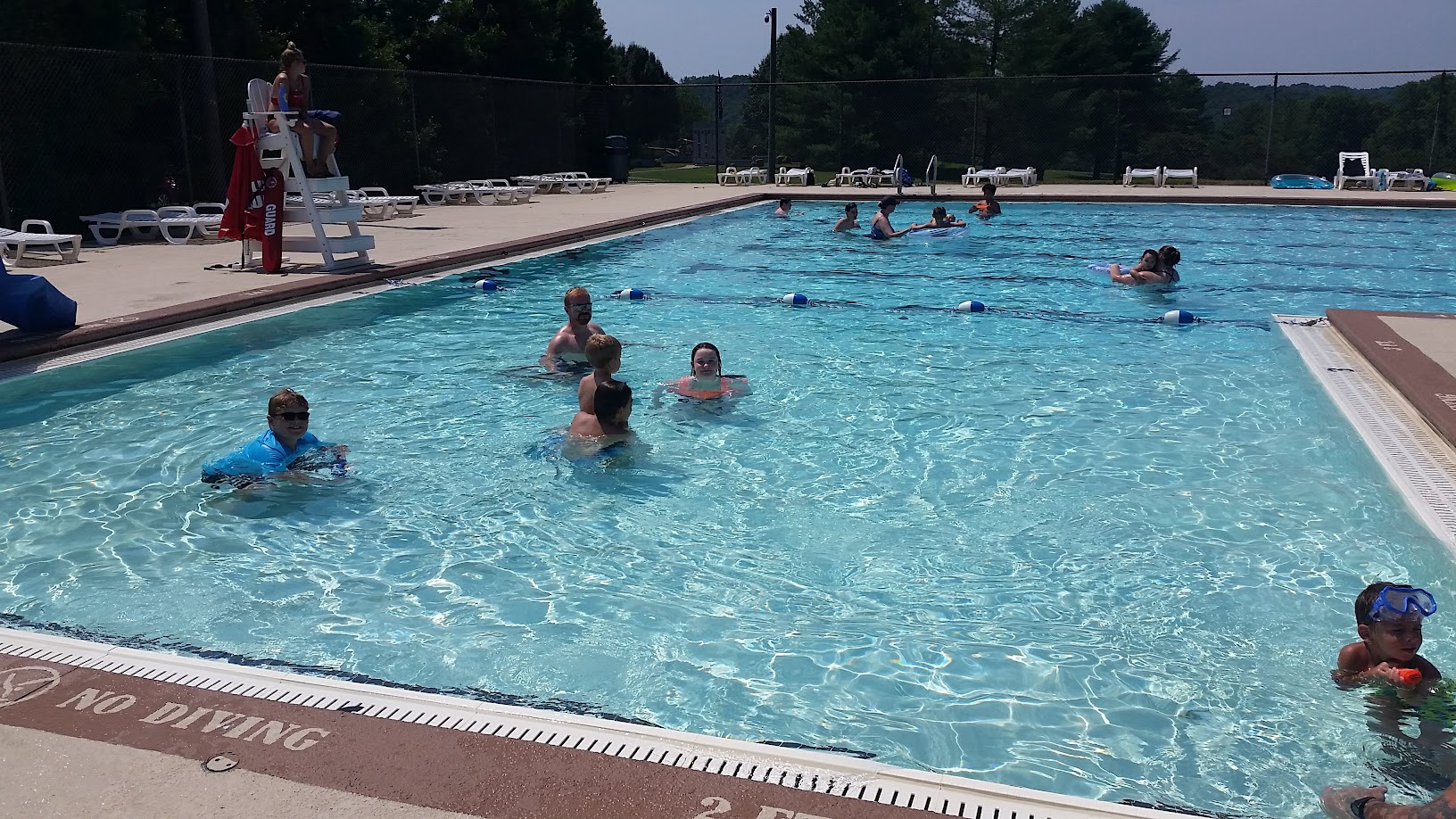 Great pool! L shaped . First time here they take cash , open space clean water chlorine based. Not crowded. Clean, and kiddie pool which was warmer than huge pool. Very beautiful pool park and trails basketball etc and friendly employees