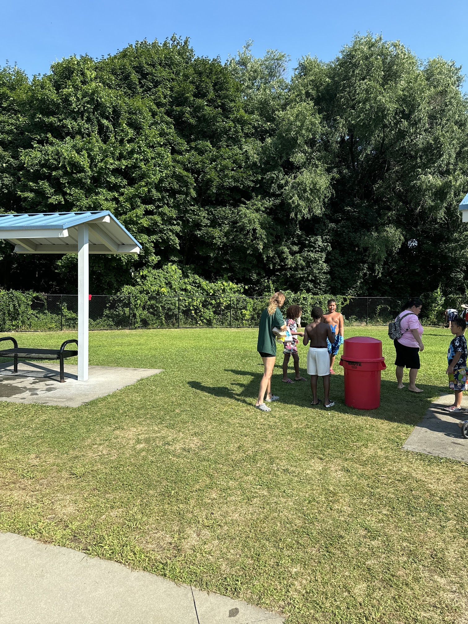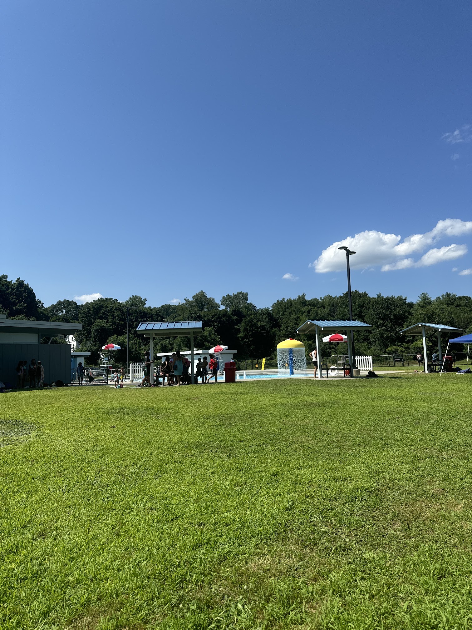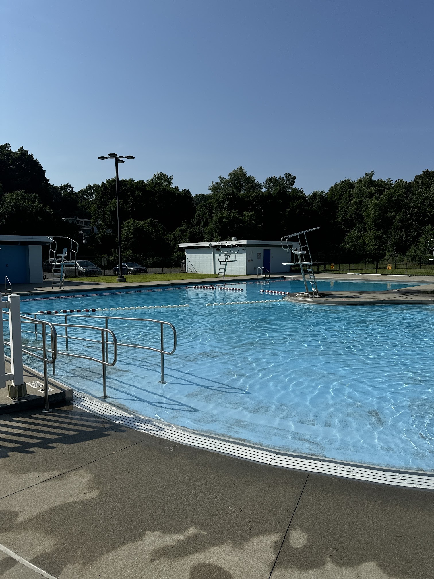 This was a nice visit to the local public pool. We were on vacation at a nearby camp site. It was a hot day so we needed a place close by. The pool at the camp site was closed and I do not like pond water. The guards are very nice, we paid $35 for 3 teens and two adults. The pool is clean and the sitting areas are very nice. It’s one big pool with three sections. They take two 20 minute breaks where they ask everyone to step outside the pool, other than that it’s a nice time spent on a hot summer day.