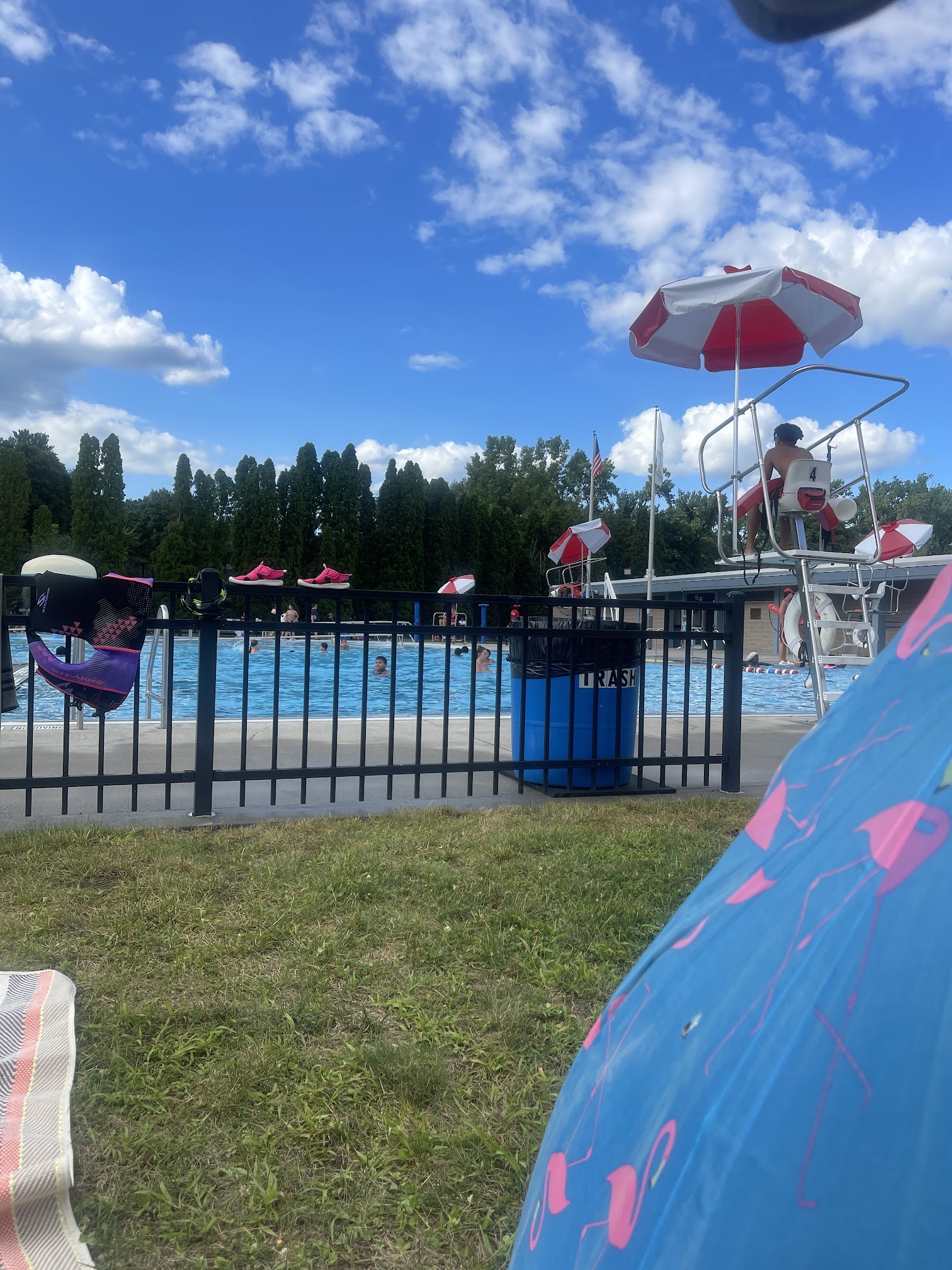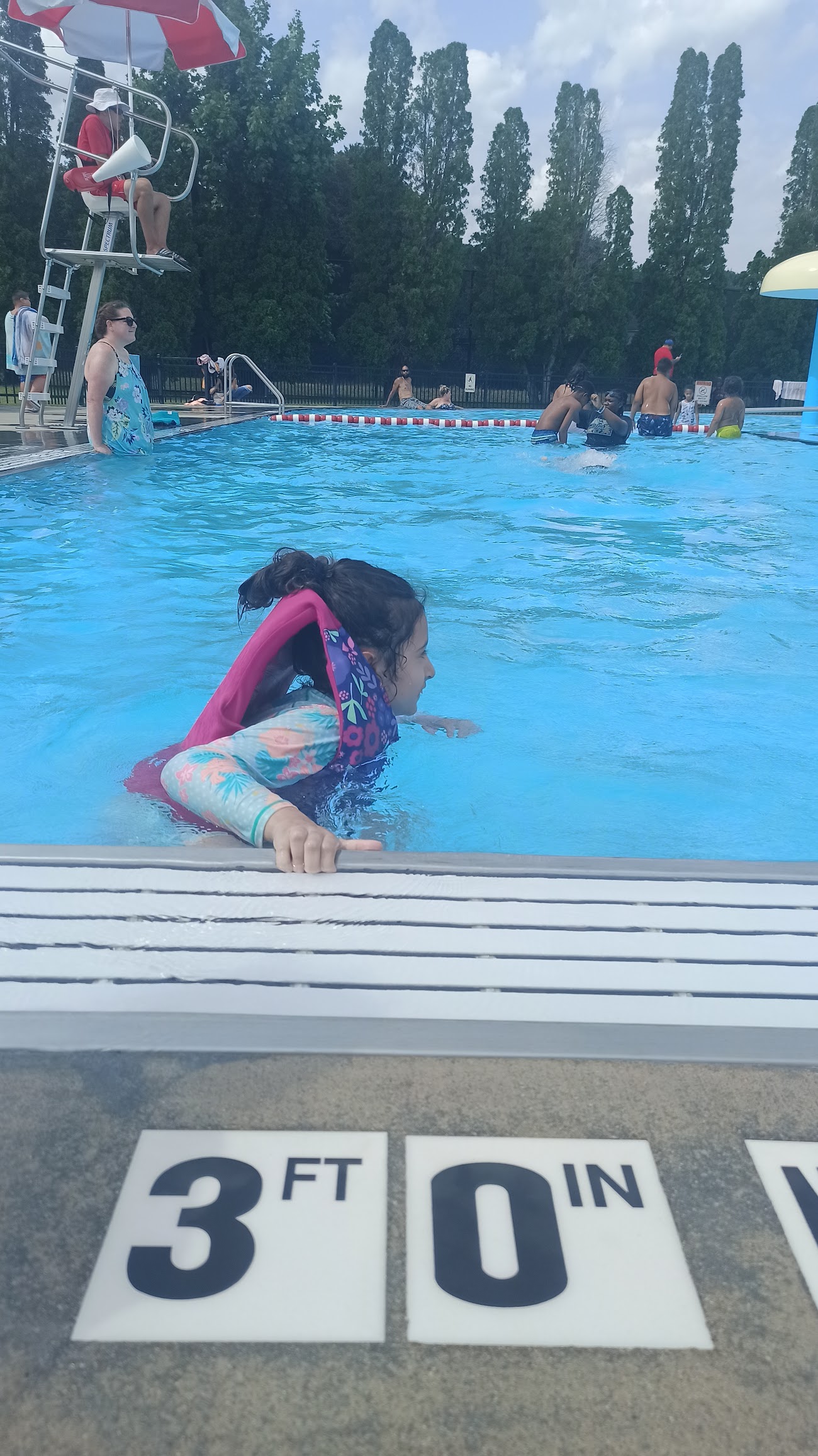 Clean swimming pool with lifeguards and clean bathrooms.