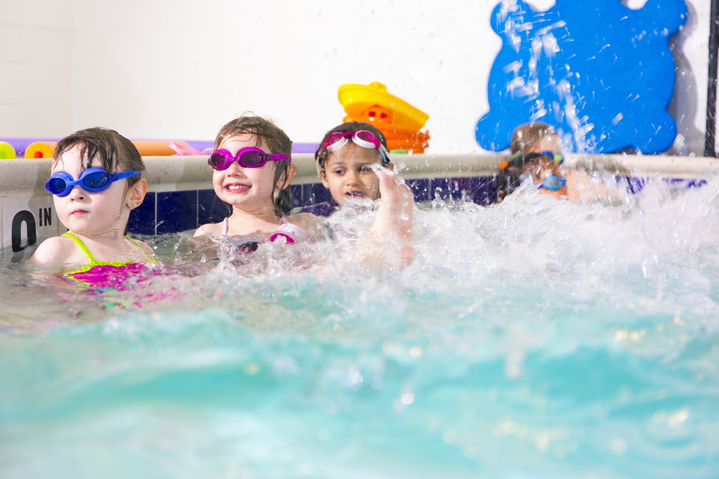 The pools at KIDS FIRST Swim School - York are consistently maintained at a comfortable 90 degrees Fahrenheit (32 degrees Celsius), providing an ideal and warm environment for children's swim lessons.