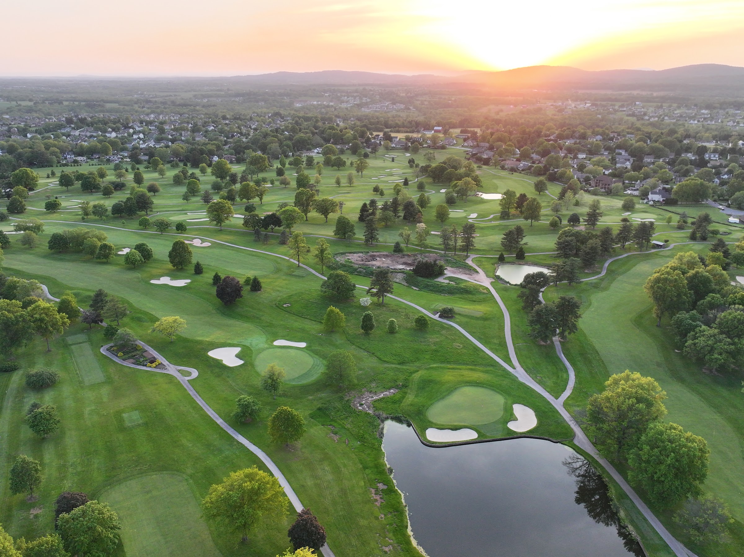 Golf course, pool, tennis courts and banquet hall at a long-running club amid scenic grounds.