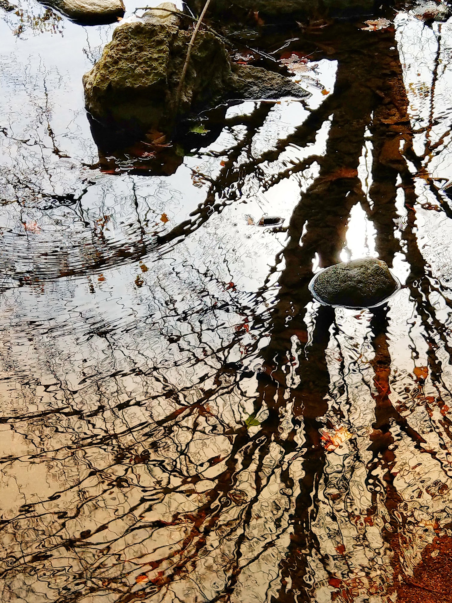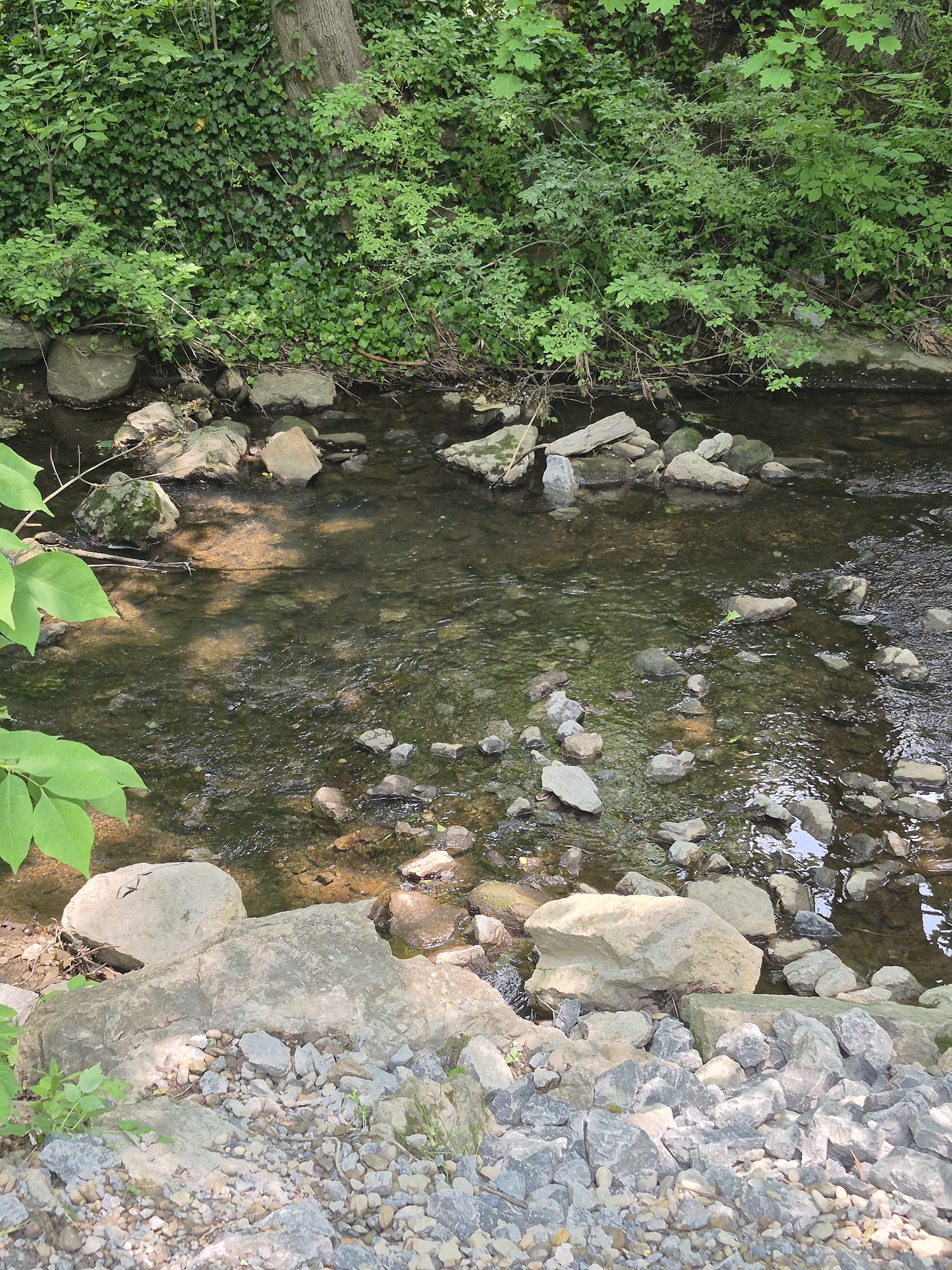Relaxing park featuring a pool along with a creek and a sandy spot.