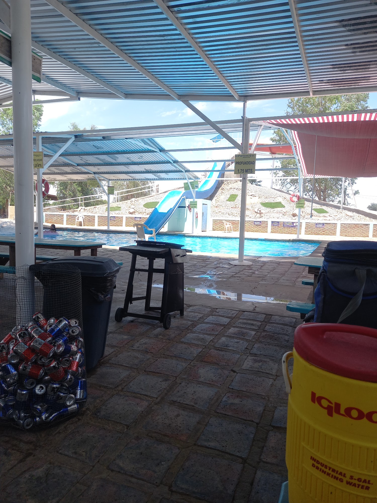 Es agradable el ambiente, probablemente no sea tan de su agrado si se engenta ya que suele llenarse demasiado, tanto en mesas como en el área de albercas, si es el caso le recomendaría ir entre semana; hay baños y regaderas así como una tiendita con diversos productos. Las albercas cuentan con sombra.