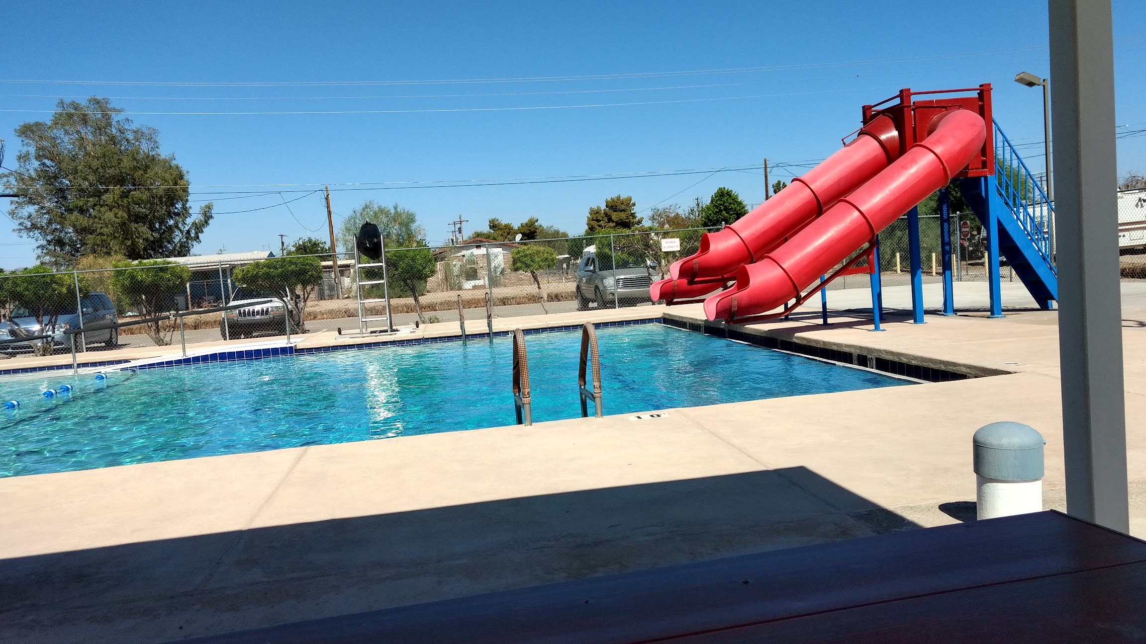 The staff/life guards were pretty lazy , gossiping among themselves. The pool itself was a nice relief from the sun . The life guards were being almost bullies to a 3 year old if you can believe it. The parents were correcting the child and the life guards would talk nasty about the parent and their child. I was disgusted. They shut the pool off because the child was climbing out of the pool instead of using the ladder . Which I get it’s a safety thing but it seemed pretty petty to ruin the other kids time. Management needs to keep an eye/ear out for the staff . Made the day kind of a bummer do to the ladies working . Other than that it’s the only pool for miles